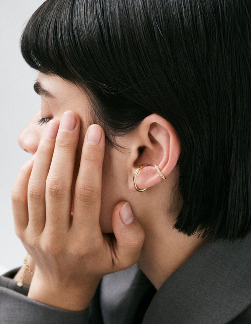 The beauty of an ear cuff is that no piercing is necessary, making it straightforward to style up a stacked ear when you want to make a statement. We create sterling silver ear cuffs, gold vermeil and solid gold ear cuffs to sit on different parts of your ear, so you can combine them as you wish to create your chosen look.