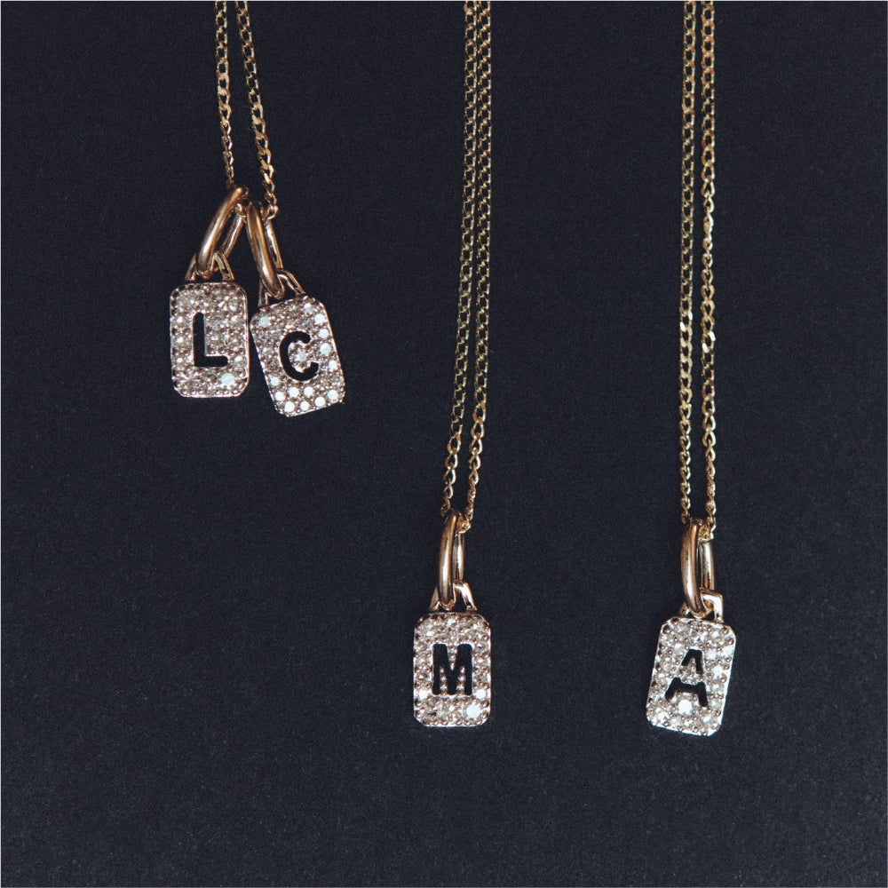 Tiny Diamond Initial Tag Pendant